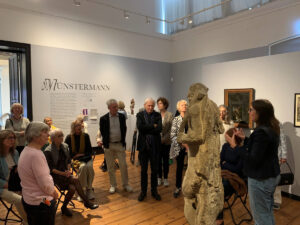 Am Sonntagvormittag, den 24. August 2025, führte uns Dr. Anna Heinze in die Welt und das umfangreiche bildhauerische Schaffen des Ludwig Münstermann ein. Und so brachte sie uns an Hand zahlreicher Exponate aus dem hauseigenen Sammlungsschatz sowie etlicher Leihgaben den norddeutschen Ausnahmekünstler des 17. Jh. mit spannenden Details näher. Unterhaltsam erläuterte sie, welche organisatorischen Herausforderungen im Zuge der Ausstellungskuratierung zu stemmen waren – und zwar im wahrsten Sinne des Wortes. Ein besonderes Augenmerk warf sie abschließend auf den Werkzyklus des zeitgenössischen Künstlers, Markus Lüpertz, der sich ausschließlich dem „Apoll“ von Münstermann widmet.