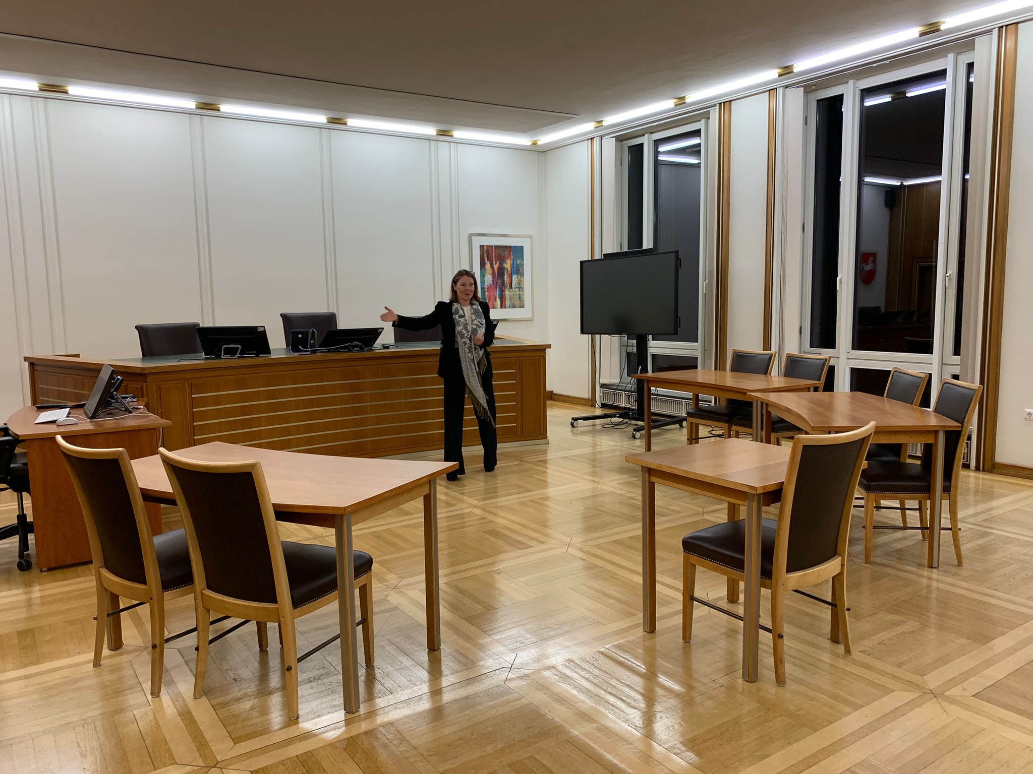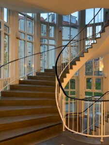 Am 28. Oktober 2025 waren wir zu Gast im Oberlandesgericht Oldenburg, wo uns deren Präsidentin, Anke van Hove, auf einen interessanten Rundgang zu ausgewählten Kunstwerken und deren Herkunft mitnahm. Ihr ist es zudem zu verdanken, dass vom ursprünglichen 50er Jahre Charme dieses Gebäudeteils etliche Designelemente erhalten werden konnten und nun in frischem Glanze erstrahlen. Herzlichen Dank – auch, dass wir einen ganz persönlichen kunstvollen Einblick in Ihr Büro erheischen durften!