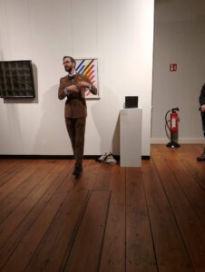 Im Rahmen „Der persönliche Blick“ verriet uns am 12. November 2025 der seit 2025 an der jüdischen Gemeinde Oldenburg tätige Rabbiner, Levi Israel Ufferfilge, warum er sich für die eher „unscheinbaren Kunstwerke“ begeistert. Dazu erläuterte er uns im Prinzen-Palais mit welchen Assoziationen eine Skulptur von Peter Bonnen sowie ein Gemälde von Werner Berges „zu ihm sprechen“.