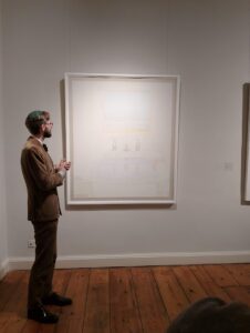 Das in Pastelltönen gehaltene „Bad-Gemälde“ von Werner Berges, welches durch seinen Strandausblick eine besondere Leichtigkeit versprüht, erinnerte ihn schmunzelnd an seine Teenagerzeit, die er in den Ferien auf der Insel Fehmarn verbrachte. Damals eher mit wenig Begeisterung, heute hingegen genießt er umso mehr Auszeiten vom Alltag an Orten wie diesen. Vielen herzlichen Dank, lieber Herr Ufferfilge, für diesen ganz besonderen Rundgang und den gemeinsamen Austausch!