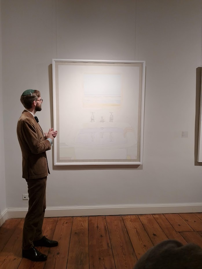 Im Rahmen „Der persönliche Blick“ verriet uns am 12. November 2025 der seit 2025 an der jüdischen Gemeinde Oldenburg tätige Rabbiner, Levi Israel Ufferfilge, warum er sich für die eher „unscheinbaren Kunstwerke“ begeistert. Dazu erläuterte er uns im Prinzen-Palais mit welchen Assoziationen eine Skulptur von Peter Bonnen sowie ein Gemälde von Werner Berges „zu ihm sprechen“.